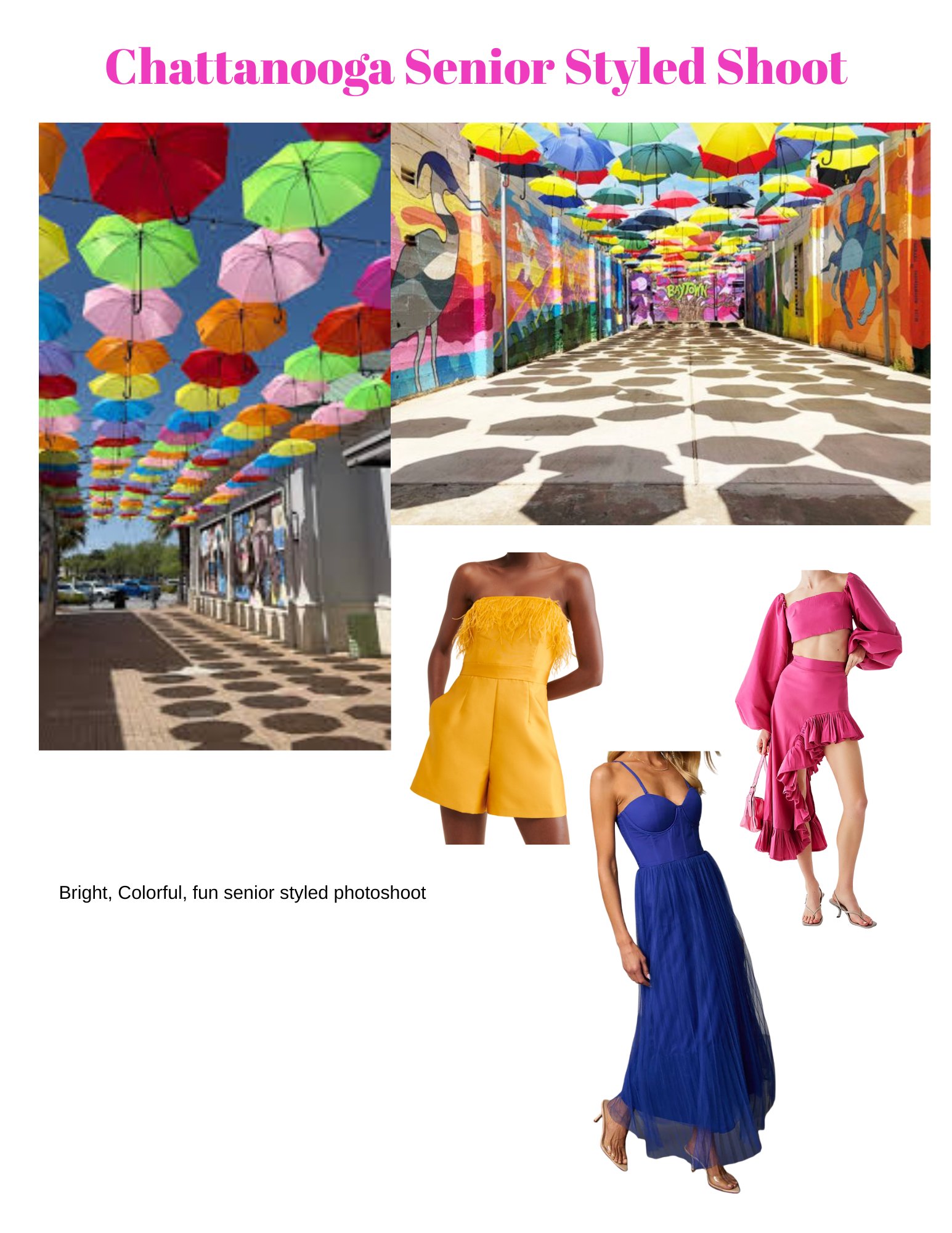 This Chattanooga senior styled shoot is bursting with color, personality, and confidence. Set beneath vibrant umbrella installations & throughout the streets of downtown Chattanooga, it’s designed to celebrate seniors who love standing out and embracing joy. Playful fashion, movement, and rich tones come together to create images that feel fresh, modern, and full of life. This shoot is all about capturing senior year in a way that’s as unforgettable as the season itself.